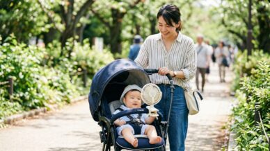 ベビーカーの暑さ対策に欠かせないファンの選び方と活用術を解説。クリップ型や羽根なし型の特徴、体感温度を下げる設置ポイント、保冷剤との併用方法まで具体的に紹介します。赤ちゃんの安全を守りながら、夏の移動を快適にするための注意点をチェックしましょう。